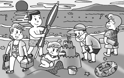 海水浴 上の絵と下の絵では10カ所違うところがあります。探してください。 |
